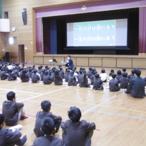 生活指導からは、箱根駅伝のランナーのお話しと、「一年の計は元旦にあり」のことわざを題材にお話ししていただきました。 |