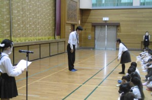 生活指導の先生からは、①あいさつについて②交通安全について③仲間づくりについての3点についてお話をしていただきました。 |