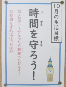 10月も終わりに近づいてきましたが、10月の生活目標です。