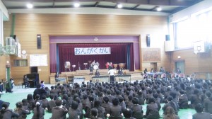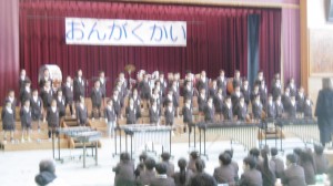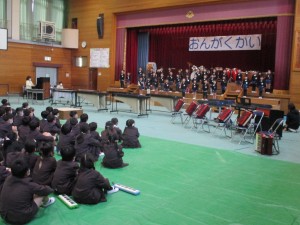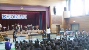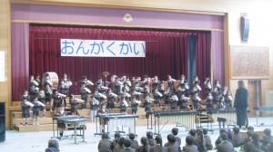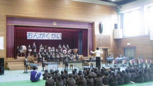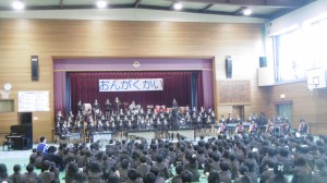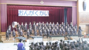 ![]() 幼稚園も一緒に歌と合奏を発表しました。 |