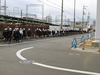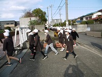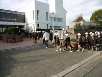 4年生は3年生 とそれぞれペア学年で北中学校まで歩いて避難訓練をしました。