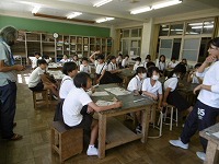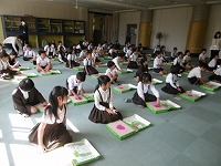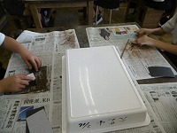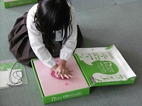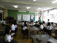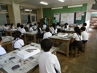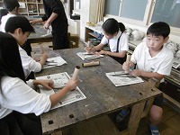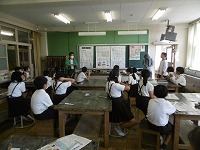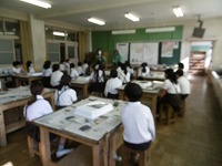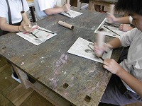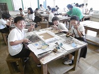 昨日に引き続き、伝統工芸の出前授業です。今日は4年2組です。