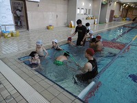 消防署の方からの説明を聞きながら一生懸命子どもたちは