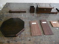 唐木指物とは、紫檀、黒檀等の唐木を素材とし、飾棚、茶棚を始め座敷机、