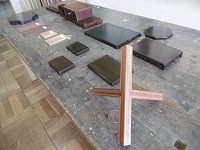 花台などを釘を用いず、組手で組み立てられ、素材を生かす漆仕上げは、